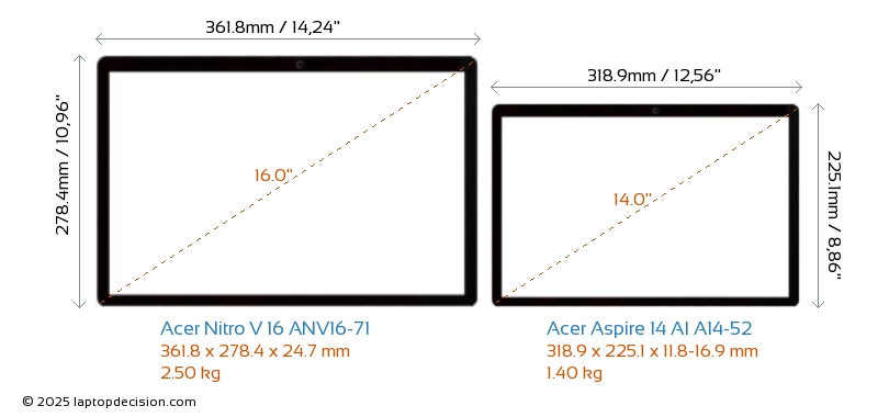 HDMIBoth Nitro V 16 ANV16-71 and Aspire 14 AI A14-52 feature an HDMI port (1x HDMI 2.1) for connecting to external monitors.