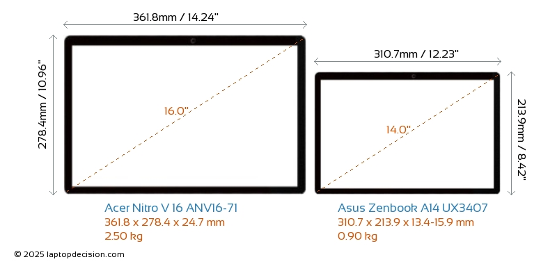 HDMIBoth Nitro V 16 ANV16-71 and Zenbook A14 UX3407 feature an HDMI port (1x HDMI 2.1) for connecting to external monitors.
