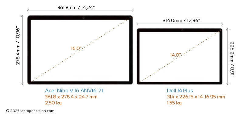HDMIBoth Nitro V 16 ANV16-71 and 14 Plus feature an HDMI port (1x HDMI 2.1) for connecting to external monitors.