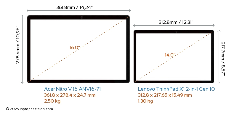 ThunderboltBoth Nitro V 16 ANV16-71 and ThinkPad X1 2-in-1 Gen 10 are equipped with Thunderbolt 4 ports.