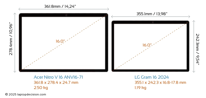 HDMIBoth Nitro V 16 ANV16-71 and Gram 16 2024 feature an HDMI port (1x HDMI 2.1) for connecting to external monitors.