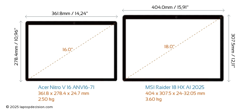 Wifi Raider 18 HX AI 2025 features a more advanced Wi-Fi standard v7, providing faster and more reliable wireless connections compared to Nitro V 16 ANV16-71 (v6).