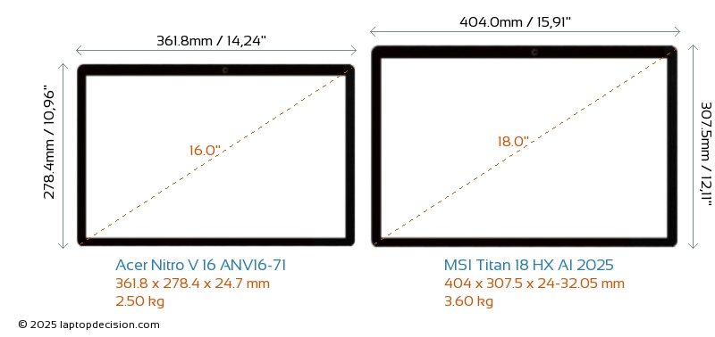 HDMIBoth Nitro V 16 ANV16-71 and Titan 18 HX AI 2025 feature an HDMI port (1x HDMI 2.1) for connecting to external monitors.
