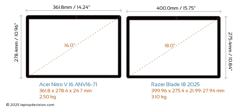 Wifi Blade 18 2025 features a more advanced Wi-Fi standard v7, providing faster and more reliable wireless connections compared to Nitro V 16 ANV16-71 (v6).