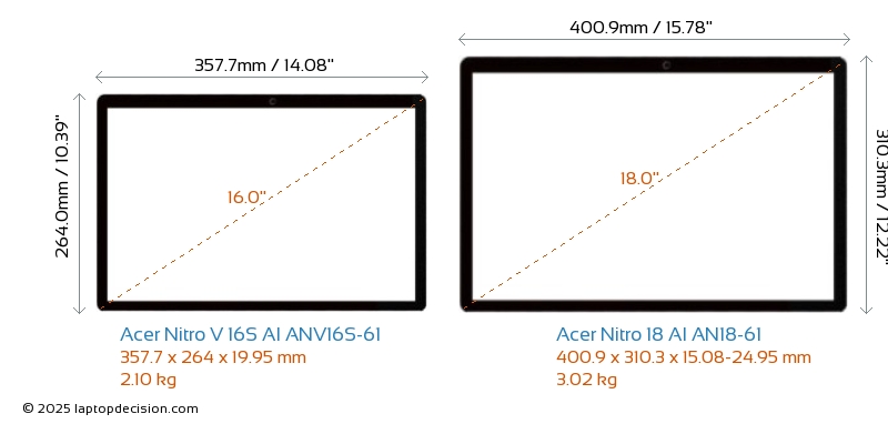 HDMIBoth Nitro V 16S AI ANV16S-61 and Nitro 18 AI AN18-61 feature an HDMI port (1x HDMI 2.1) for connecting to external monitors.