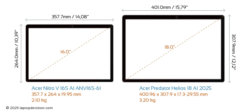 HDMIBoth Nitro V 16S AI ANV16S-61 and Predator Helios 18 AI 2025 feature an HDMI port (1x HDMI 2.1) for connecting to external monitors.
