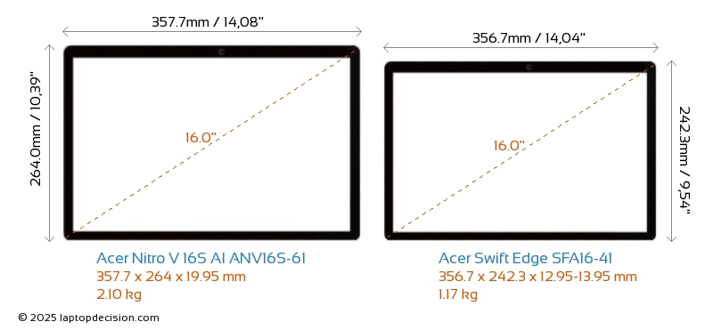 SD Card Reader Nitro V 16S AI ANV16S-61 is equipped with an SD Card Reader for easy access to memory cards. Swift Edge SFA16-41 does not have an SD Card Reader.