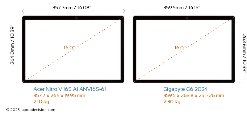 HDMIBoth Nitro V 16S AI ANV16S-61 and G6 2024 feature an HDMI port (1x HDMI 2.1) for connecting to external monitors.