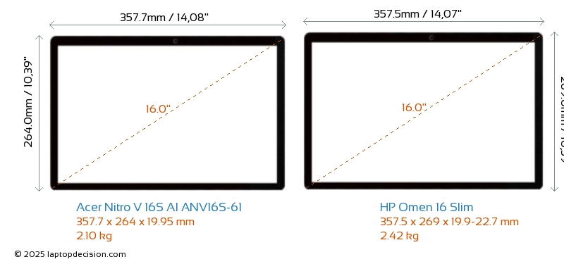 HDMIBoth Nitro V 16S AI ANV16S-61 and Omen 16 Slim feature an HDMI port (1x HDMI 2.1) for connecting to external monitors.