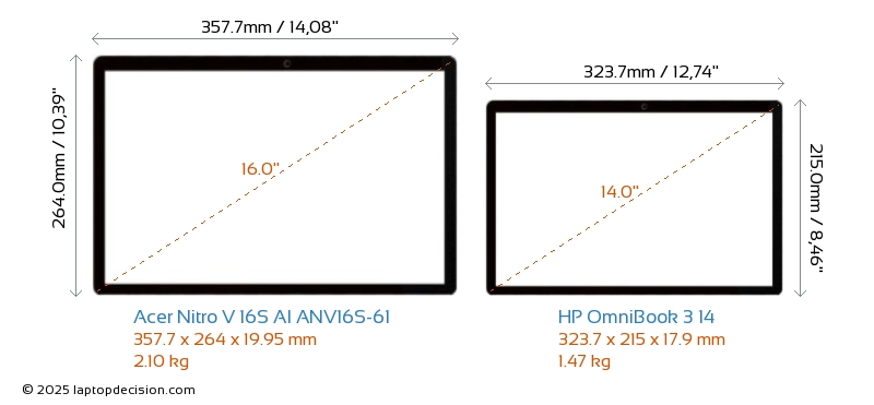 Audio JackBoth Nitro V 16S AI ANV16S-61 and OmniBook 3 14 are equipped with a 3.5mm Audio Jack, providing seamless connection to headphones and speakers.