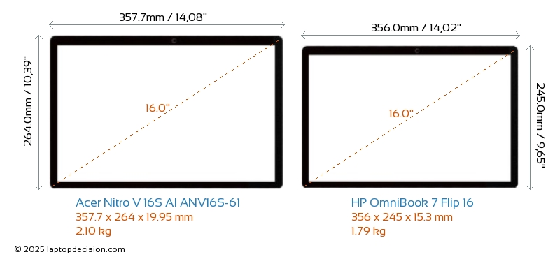 Audio JackBoth Nitro V 16S AI ANV16S-61 and OmniBook 7 Flip 16 are equipped with a 3.5mm Audio Jack, providing seamless connection to headphones and speakers.