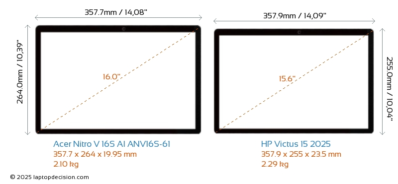 HDMIBoth Nitro V 16S AI ANV16S-61 and Victus 15 2025 feature an HDMI port (1x HDMI 2.1) for connecting to external monitors.