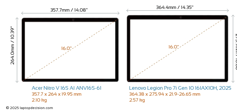 SD Card Reader Nitro V 16S AI ANV16S-61 is equipped with an SD Card Reader for easy access to memory cards. Legion Pro 7i Gen 10 16IAX10H, 2025 does not have an SD Card Reader.