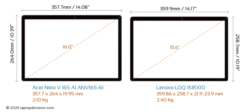 ThunderboltNeither Nitro V 16S AI ANV16S-61 nor LOQ 15IRX10 has Thunderbolt port.