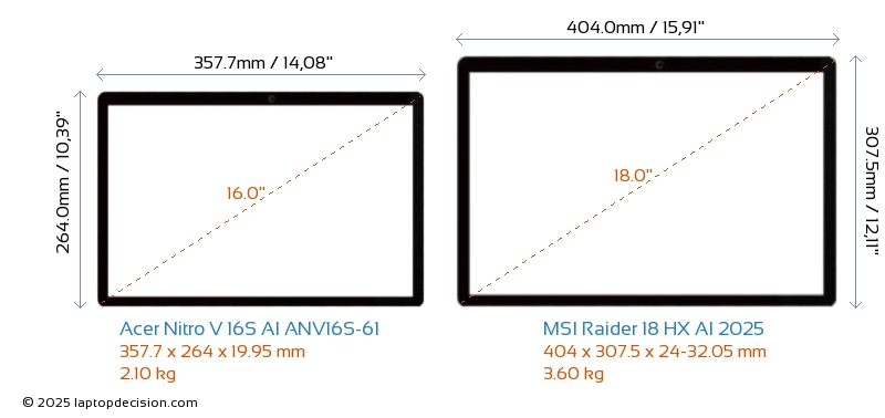 Wifi Raider 18 HX AI 2025 features a more advanced Wi-Fi standard v7, providing faster and more reliable wireless connections compared to Nitro V 16S AI ANV16S-61 (v6E).