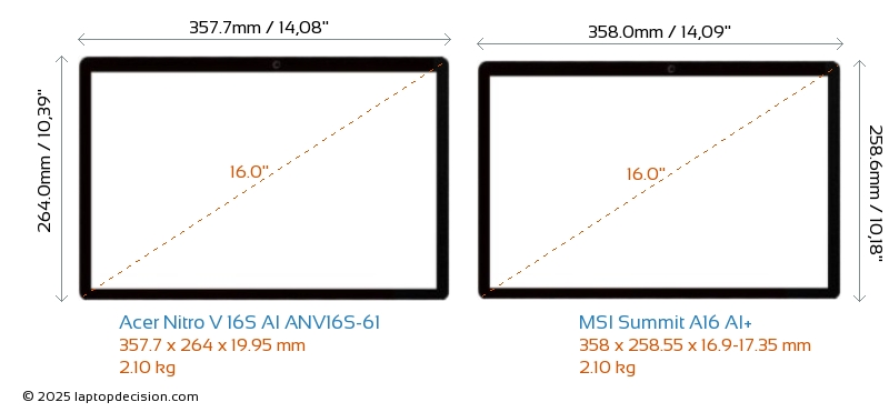 HDMIBoth Nitro V 16S AI ANV16S-61 and Summit A16 AI+ feature an HDMI port (1x HDMI 2.1) for connecting to external monitors.