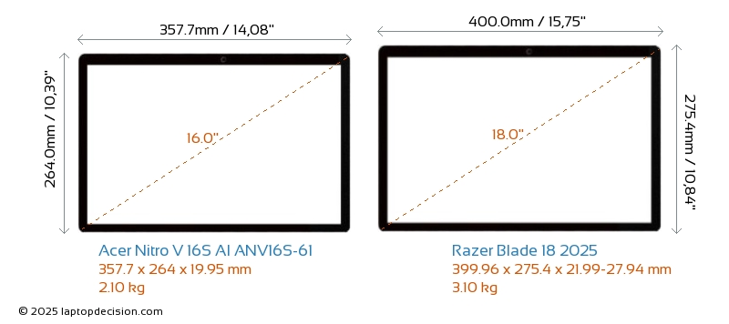 Wifi Blade 18 2025 features a more advanced Wi-Fi standard v7, providing faster and more reliable wireless connections compared to Nitro V 16S AI ANV16S-61 (v6E).