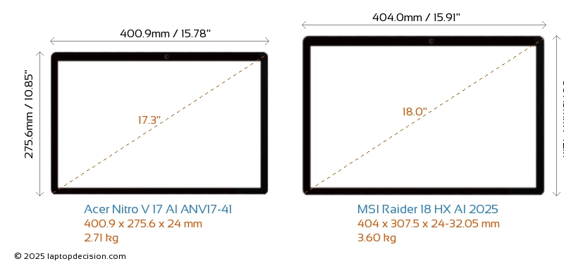 Wifi Raider 18 HX AI 2025 features a more advanced Wi-Fi standard v7, providing faster and more reliable wireless connections compared to Nitro V 17 AI ANV17-41 (v6E).