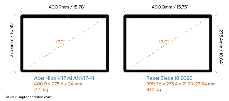 Wifi Blade 18 2025 features a more advanced Wi-Fi standard v7, providing faster and more reliable wireless connections compared to Nitro V 17 AI ANV17-41 (v6E).