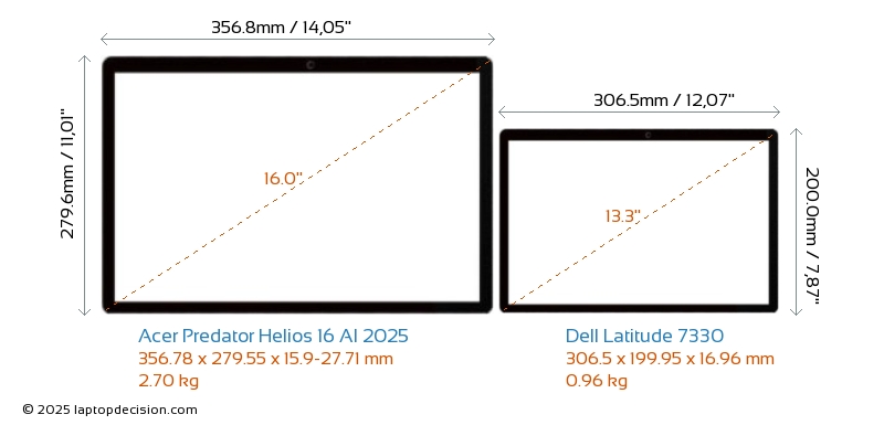 HDMIBoth Predator Helios 16 AI 2025 and Latitude 7330 feature an HDMI port. Predator Helios 16 AI 2025 offers 1x HDMI 2.1, while Latitude 7330 offers 1x HDMI 2.0.