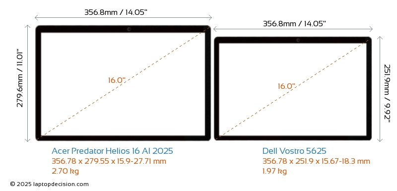 HDMIBoth Predator Helios 16 AI 2025 and Vostro 5625 feature an HDMI port. Predator Helios 16 AI 2025 offers 1x HDMI 2.1, while Vostro 5625 offers 1x HDMI 1.4.