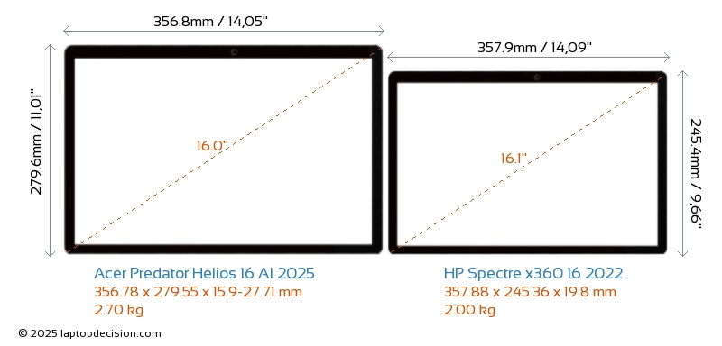 HDMIBoth Predator Helios 16 AI 2025 and Spectre x360 16 2022 feature an HDMI port. Predator Helios 16 AI 2025 offers 1x HDMI 2.1, while Spectre x360 16 2022 offers 1x HDMI 2.0.