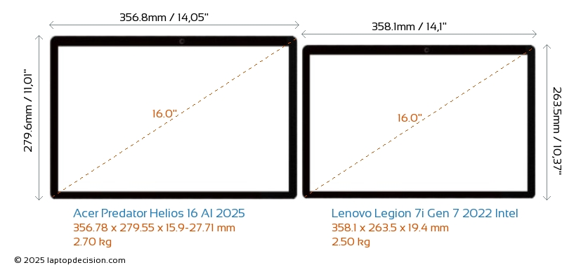 HDMIBoth Predator Helios 16 AI 2025 and Legion 7i Gen 7 2022 Intel feature an HDMI port (1x HDMI 2.1) for connecting to external monitors.