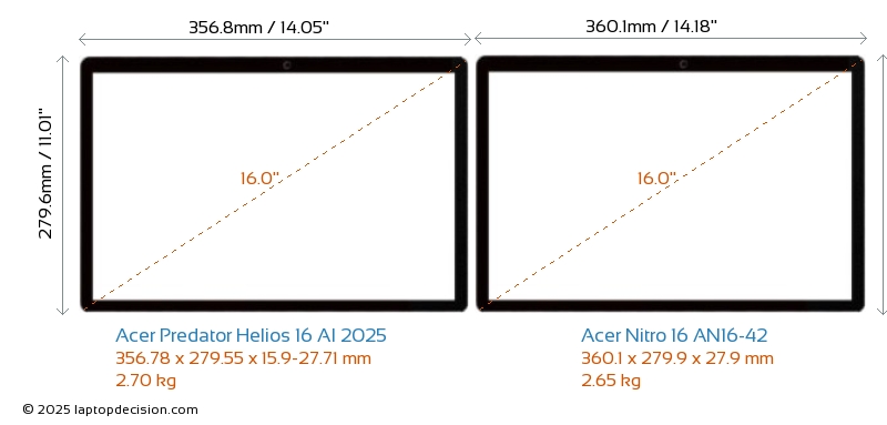 HDMIBoth Predator Helios 16 AI 2025 and Nitro 16 AN16-42 feature an HDMI port (1x HDMI 2.1) for connecting to external monitors.