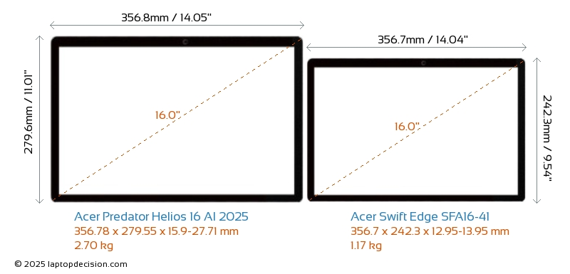 HDMIBoth Predator Helios 16 AI 2025 and Swift Edge SFA16-41 feature an HDMI port (1x HDMI 2.1) for connecting to external monitors.