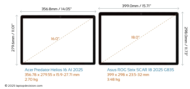 SD Card Reader Predator Helios 16 AI 2025 is equipped with an SD Card Reader for easy access to memory cards. ROG Strix SCAR 18 2025 G835 does not have an SD Card Reader.