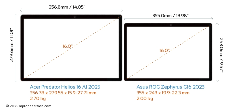 HDMIBoth Predator Helios 16 AI 2025 and ROG Zephyrus G16 2023 feature an HDMI port (1x HDMI 2.1) for connecting to external monitors.