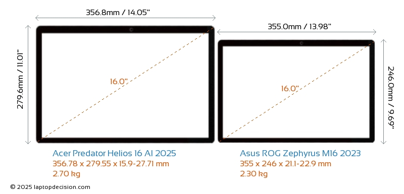 Audio JackBoth Predator Helios 16 AI 2025 and ROG Zephyrus M16 2023 are equipped with a 3.5mm Audio Jack, providing seamless connection to headphones and speakers.