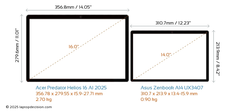 HDMIBoth Predator Helios 16 AI 2025 and Zenbook A14 UX3407 feature an HDMI port (1x HDMI 2.1) for connecting to external monitors.
