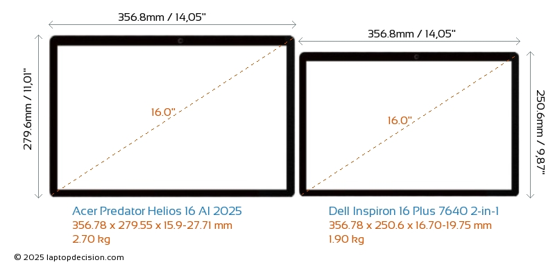 HDMIBoth Predator Helios 16 AI 2025 and Inspiron 16 Plus 7640 2-in-1 feature an HDMI port. Predator Helios 16 AI 2025 offers 1x HDMI 2.1, while Inspiron 16 Plus 7640 2-in-1 offers 1x HDMI 1.4.