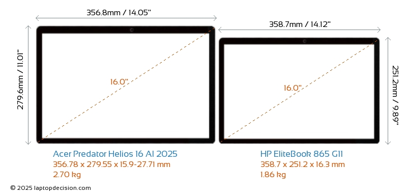 HDMIBoth Predator Helios 16 AI 2025 and EliteBook 865 G11 feature an HDMI port (1x HDMI 2.1) for connecting to external monitors.