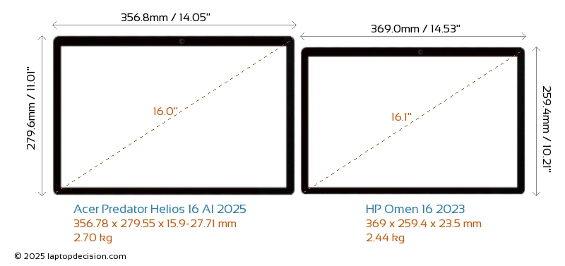 HDMIBoth Predator Helios 16 AI 2025 and Omen 16 2023 feature an HDMI port (1x HDMI 2.1) for connecting to external monitors.