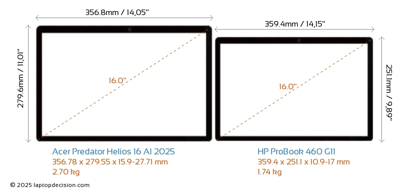 HDMIBoth Predator Helios 16 AI 2025 and ProBook 460 G11 feature an HDMI port (1x HDMI 2.1) for connecting to external monitors.
