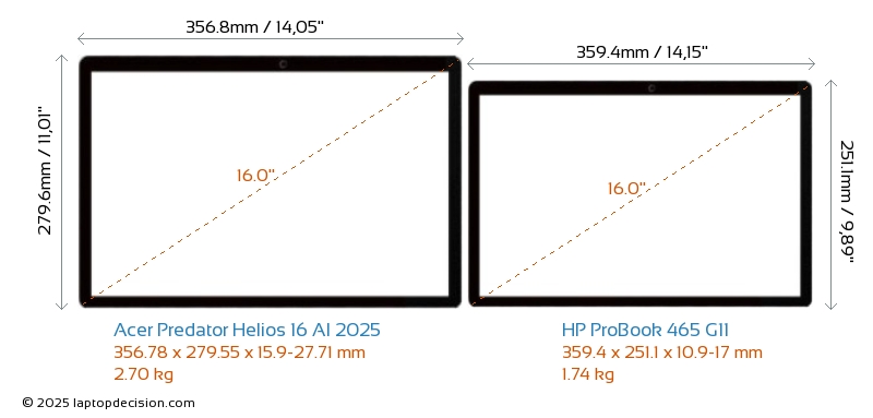 HDMIBoth Predator Helios 16 AI 2025 and ProBook 465 G11 feature an HDMI port (1x HDMI 2.1) for connecting to external monitors.