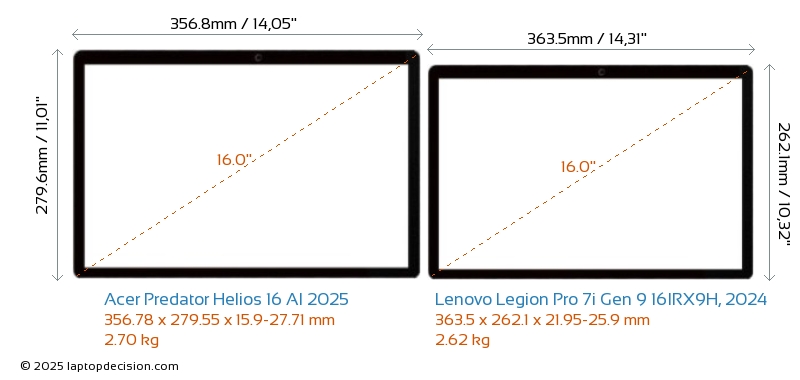 HDMIBoth Predator Helios 16 AI 2025 and Legion Pro 7i Gen 9 16IRX9H, 2024 feature an HDMI port (1x HDMI 2.1) for connecting to external monitors.