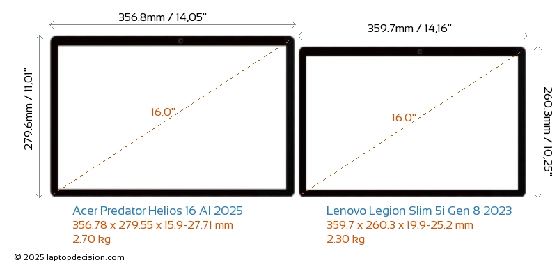 HDMIBoth Predator Helios 16 AI 2025 and Legion Slim 5i Gen 8 2023 feature an HDMI port (1x HDMI 2.1) for connecting to external monitors.