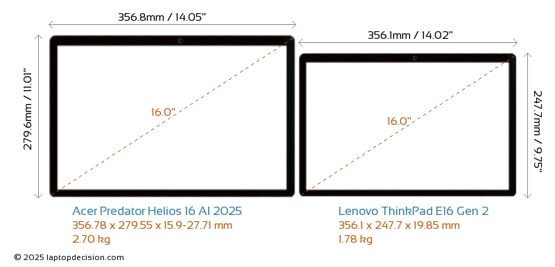 HDMIBoth Predator Helios 16 AI 2025 and ThinkPad E16 Gen 2 feature an HDMI port (1x HDMI 2.1) for connecting to external monitors.