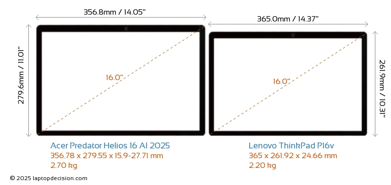 HDMIBoth Predator Helios 16 AI 2025 and ThinkPad P16v feature an HDMI port (1x HDMI 2.1) for connecting to external monitors.