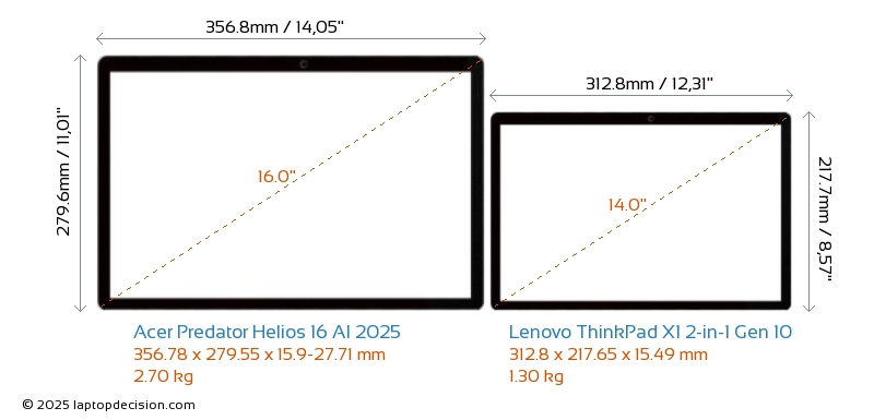 HDMIBoth Predator Helios 16 AI 2025 and ThinkPad X1 2-in-1 Gen 10 feature an HDMI port (1x HDMI 2.1) for connecting to external monitors.