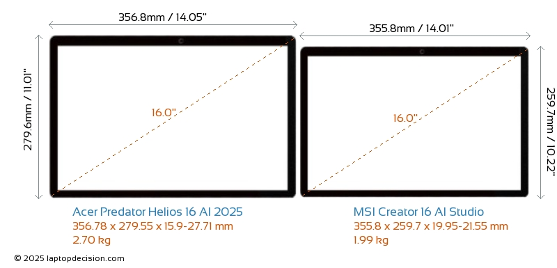HDMIBoth Predator Helios 16 AI 2025 and Creator 16 AI Studio feature an HDMI port (1x HDMI 2.1) for connecting to external monitors.