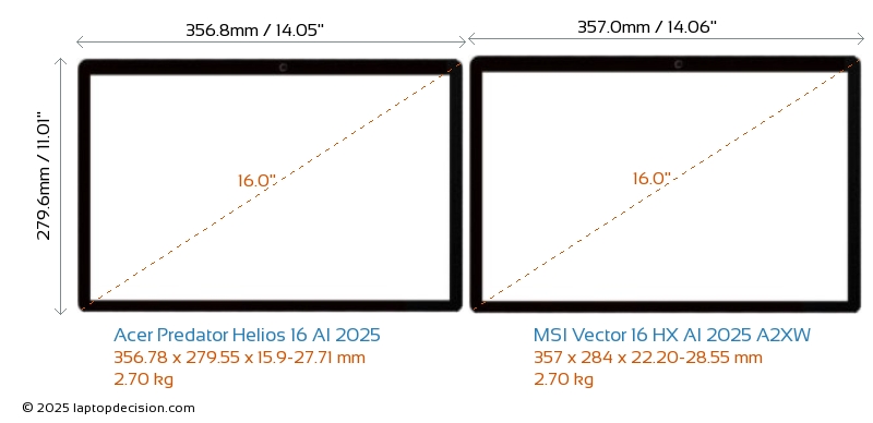 HDMIBoth Predator Helios 16 AI 2025 and Vector 16 HX AI 2025 A2XW feature an HDMI port (1x HDMI 2.1) for connecting to external monitors.