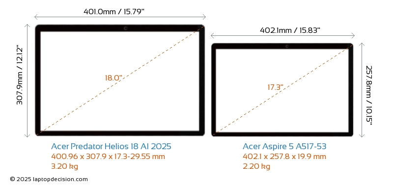 SD Card Reader Predator Helios 18 AI 2025 is equipped with an SD Card Reader for easy access to memory cards. Aspire 5 A517-53 does not have an SD Card Reader.