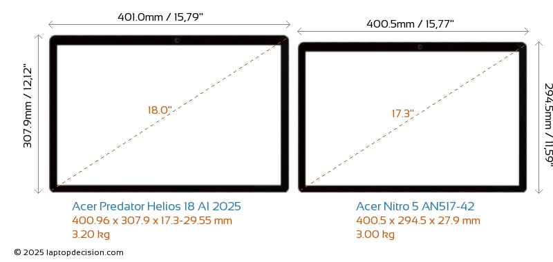SD Card Reader Predator Helios 18 AI 2025 is equipped with an SD Card Reader for easy access to memory cards. Nitro 5 AN517-42 does not have an SD Card Reader.