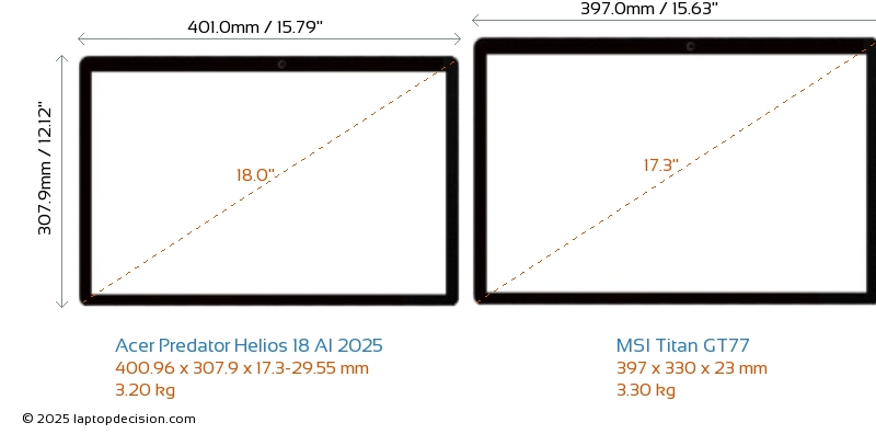 HDMIBoth Predator Helios 18 AI 2025 and Titan GT77 feature an HDMI port (1x HDMI 2.1) for connecting to external monitors.