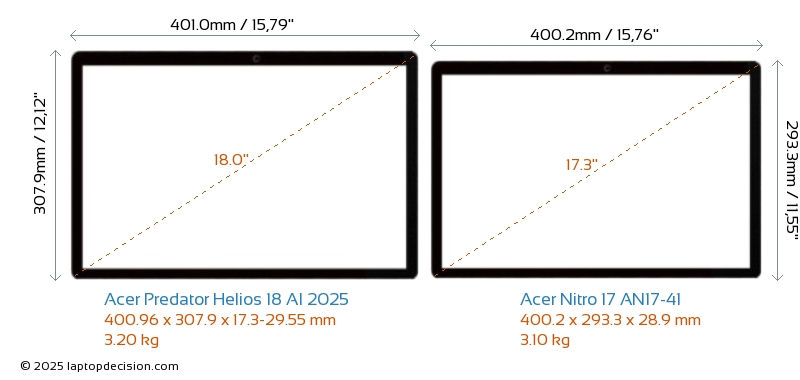 HDMIBoth Predator Helios 18 AI 2025 and Nitro 17 AN17-41 feature an HDMI port (1x HDMI 2.1) for connecting to external monitors.