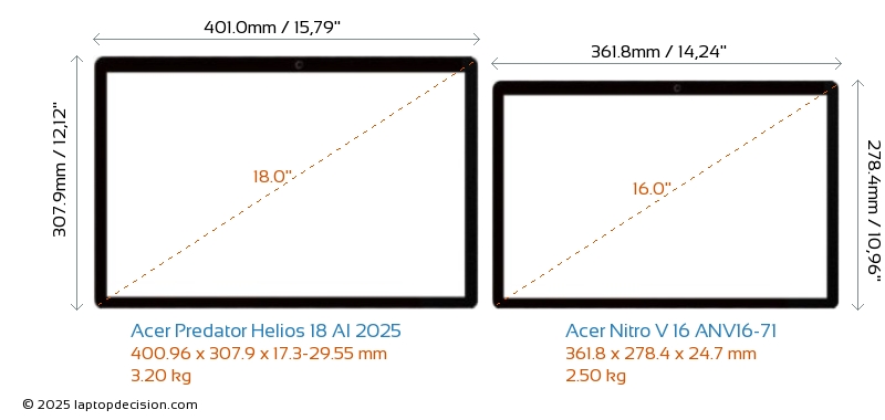 HDMIBoth Predator Helios 18 AI 2025 and Nitro V 16 ANV16-71 feature an HDMI port (1x HDMI 2.1) for connecting to external monitors.